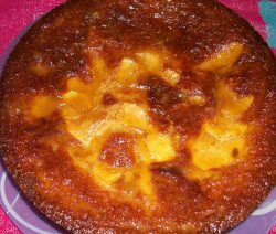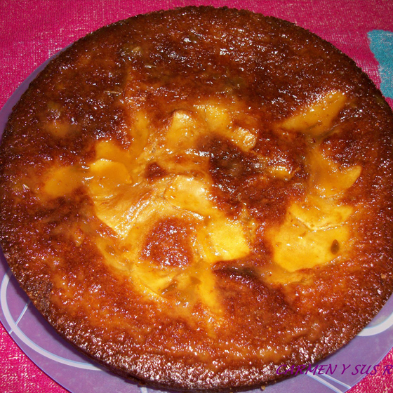 Bizcochuelo de harina de garbanzo y naranja con rodajas de manzana
