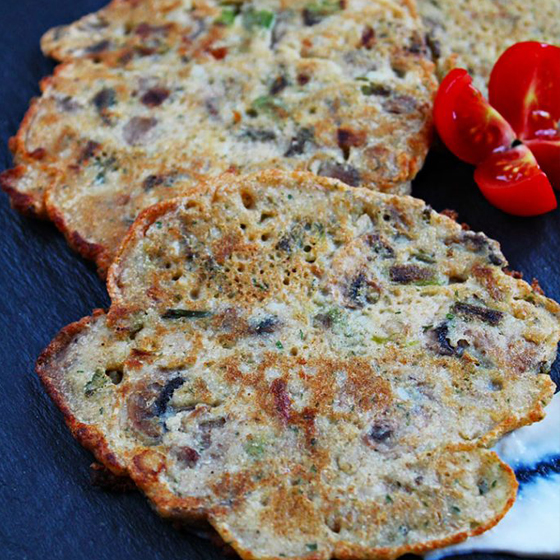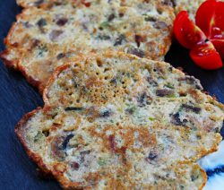Pizza de harina de garbanzo con espinaca y zucchinis.