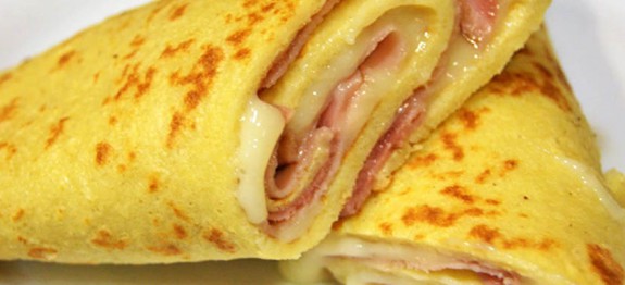 Se puede rellenar con el clásico jamón dulce y queso, haciéndolo en la sartén con el fuego apagado, pero manteniendo la crepe caliente.