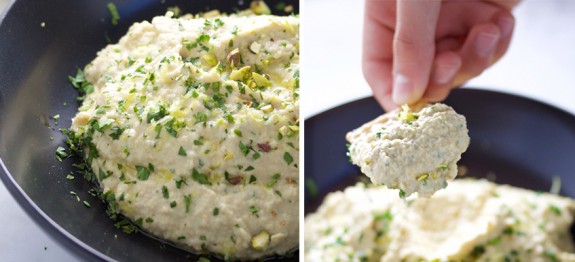 Para servir, ponlo en un platón, rocía con un chorrito de aceite de oliva extra virgen, la ralladura del limón, la menta picada y los pistachos.