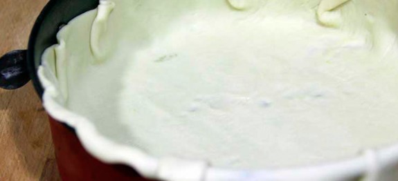 Cuando tengamos listas las patatas y la harina de garbanzo, mezclamos y vertimos sobre nuestro molde con la masa. Cortamos el excedente de masa y dejamos que los bordes cubran un poco la mezcla de papas y harina de garbanzo.